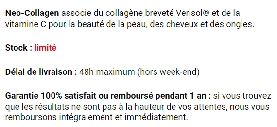 Cliquez ici et commencez à rajeunir votre peau grâce à Neo-Collagen OFFRE SPECIAL -65%